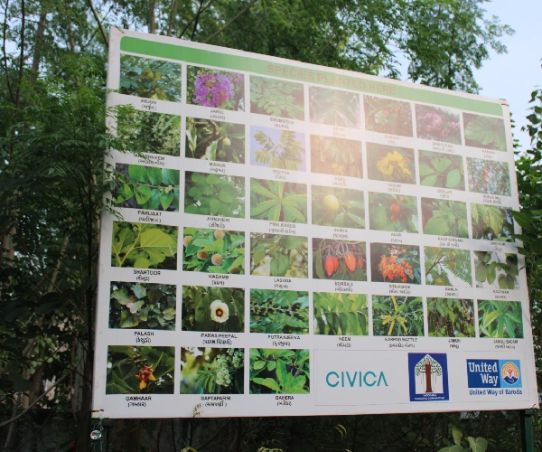 With the support of its CSR partners, United Way of Baroda advanced environmental sustainability through integrated initiatives focused on afforestation, renewable energy, water conservation, and community engagement. Large-scale Miyawaki forest developments were undertaken across urban and rural areas, promoting biodiversity, ecological restoration, and carbon sequestration, with plantation drives aligned to the “Ek Ped Maa Ke Naam” campaign that connected environmental action with social values. These efforts were strengthened through active volunteer participation, fostering a culture of environmental stewardship. Clean energy and green infrastructure interventions included the installation of solar-powered streetlights to enhance safety and sustainability in industrial and rural areas, the introduction of solar solutions in educational and childcare institutions, and the transformation of select schools into green model campuses. Water and sanitation initiatives, including upgrades to sewage treatment facilities, groundwater recharge measures, and the installation of high capacity overhead water storage systems, further supported long-term resource management, public health, and environmental resilience across communities.